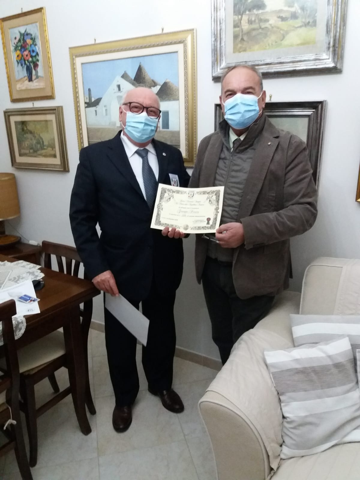 il Consigliere Nazionale Cav. Aldo Di Campi ha consegnato al neo iscritto Cav. Giuseppe Potenza,